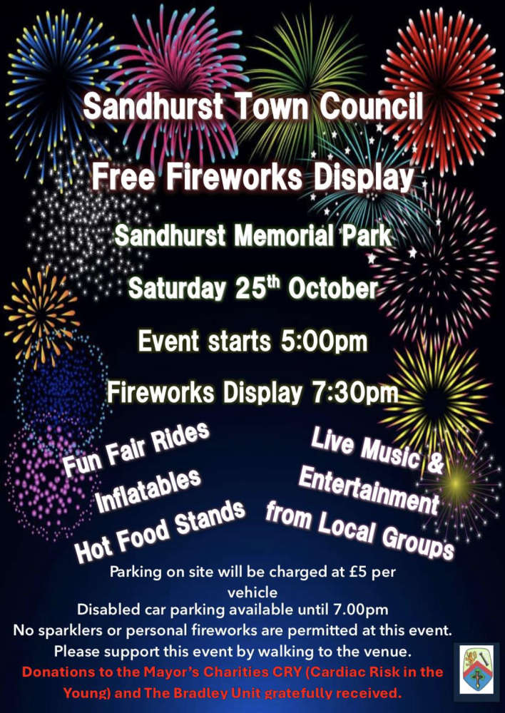 Sandhurst Town Council FREE Fireworks Display: Saturday 25th October