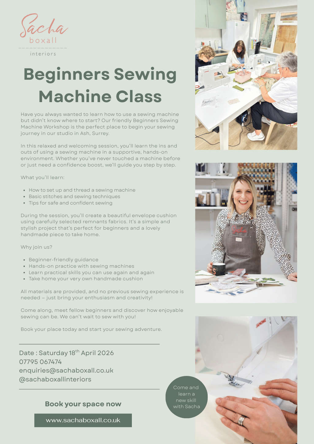 Beginners Sewing Machine Class - Sacha BoxallApril 18th 2026